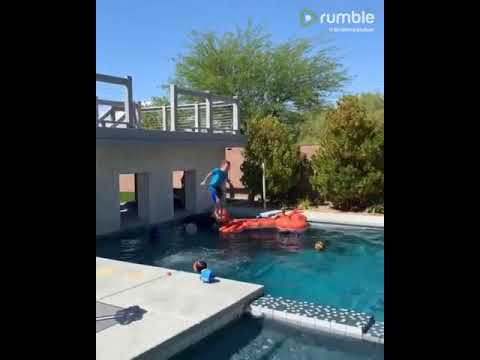 Brothers hit back-to-back trick shots before jumping into pool